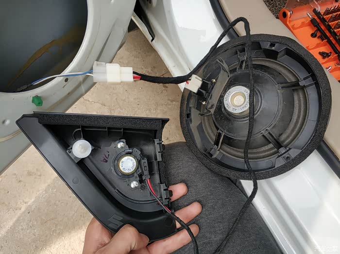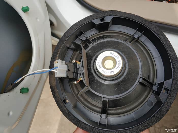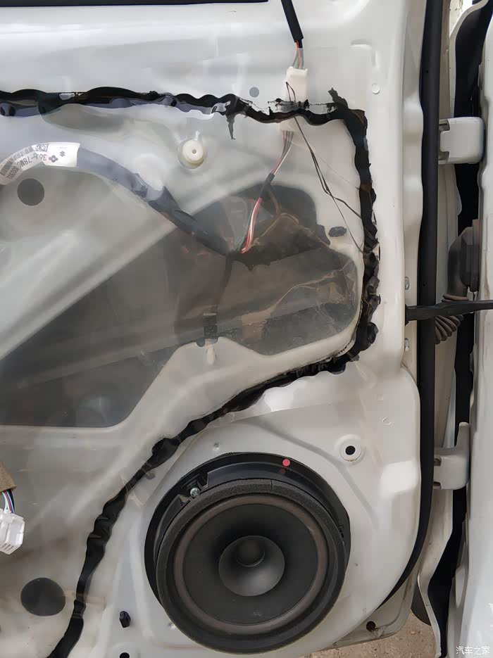 将并联线沿门板通向A柱三角板位置,然后装回大喇叭。此处忘记拍照片了,大家脑补一下画面
