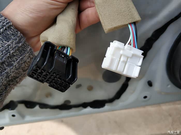 主驾驶门板的连线是两根,一根车窗玻璃控制线,一根后视镜调节控制线。副驾驶只有一根车窗玻璃控制线。