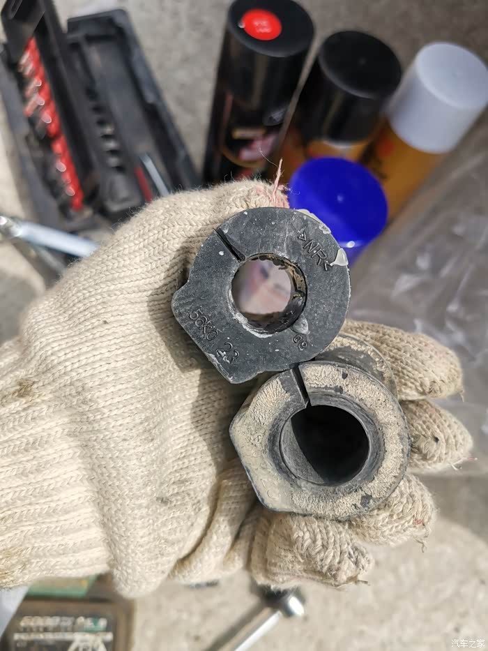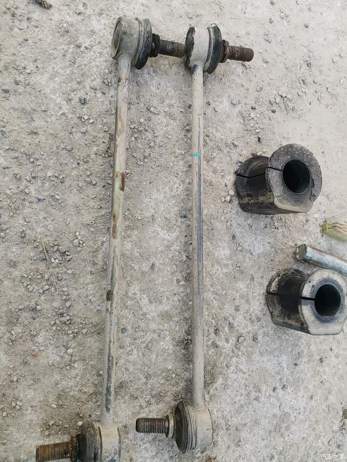 过平路,好路,没啥声响!但是过烂路,尤其过烂路转弯的时候,车速骚微快,就会咯咯咯,噔噔噔。一边烂路一边凹凸,就有点小声响,查了百度和论坛各位前辈,先下手平衡杆胶套,然后两平衡杆。因为之前看到下支