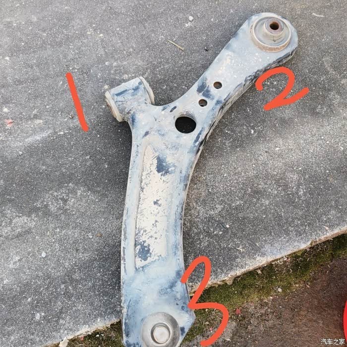 更换的下支臂,只有孔2横向有裂纹,另外两孔杠杠的