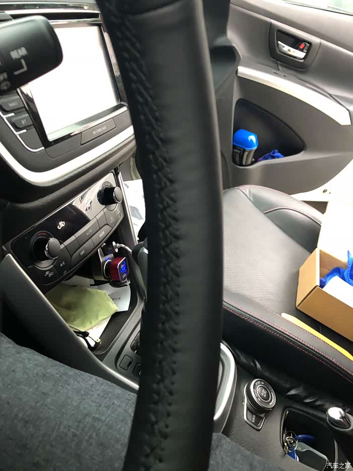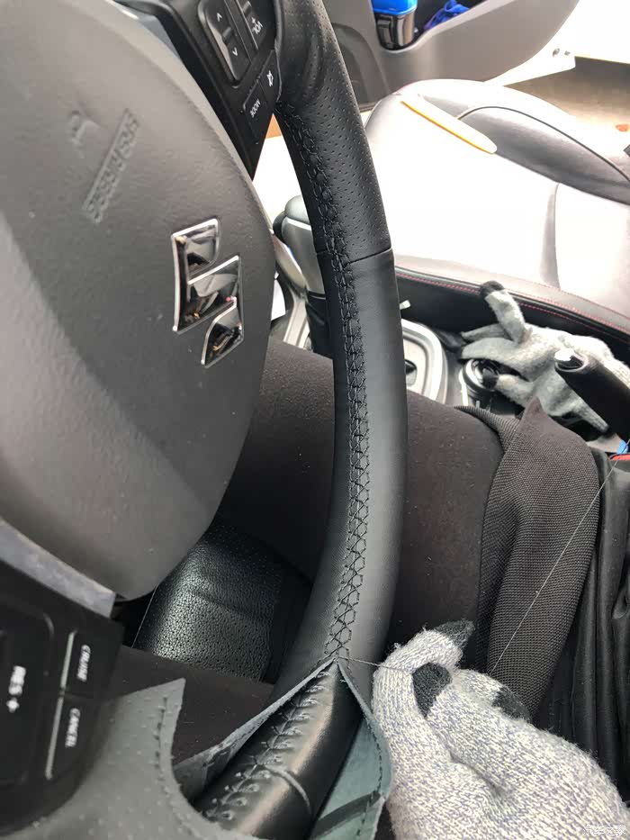 不知什么时候拿的尖锐的东西在方向盘上面划伤了皮面,虽然不注意看是看不出来的,但是想着最近时间比较多买一个给它缝上,说干就干,为了能比较贴合,我买的是锋驭专用的方向盘皮套,顺便也买了座椅边上那个缝的边条塞起来省得东西经常掉下去不好拿。想起之前也买了脚垫的夹子,还没有装起来就一起把这事给完成了,不得不说这锋驭的原装脚垫虽然材质不错,但是还没有我原来买的便宜货贴合。一直往前滑。真的要感谢我的那巧手的老婆,没几下就缝好了,工艺还不错,如果没有中间因为皮套的两皮缝接处没有正又重新拆了再改,这次是换成从接缝处往两边缝。这下就完美了,但是有一点要说这个虽说是专车专用但是还是发现不是非常贴合。如果有想自己缝的车友我这边给个建议,用车用的双面胶粘好再缝,不要用卖家送的普通的双面胶不然到时温度一高那就不舒服了,我就是怕温度高会粘乎乎的所以没有用,但是这样就会增加难度。图片是看不出来的。完工