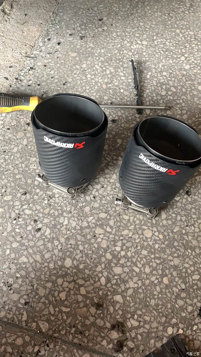 换完短簧越看尾喉假的越难看,找了当地专门弄排气的店,把尾段切了,装了天蝎尾喉,装完没有声音特别大,左边排气鼓没全切,开了几个洞,能出气就行,就怕太吵了,装了3个小时,换好感觉好多了