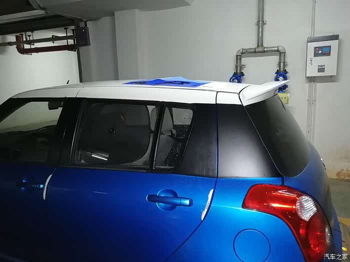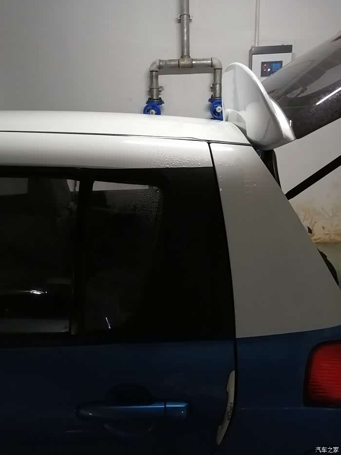 刚安装尾翼,还没贴膜,C,D柱还是白色