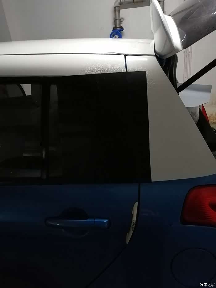 习惯性晒一下工具,再有一张塑料板,垫着膜切平,免得刮花车漆。塑料板在第14,15张图片,车顶上