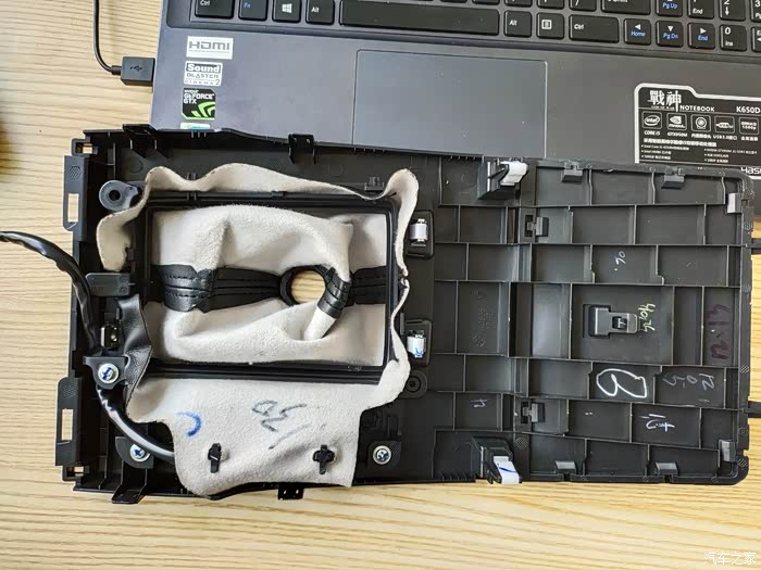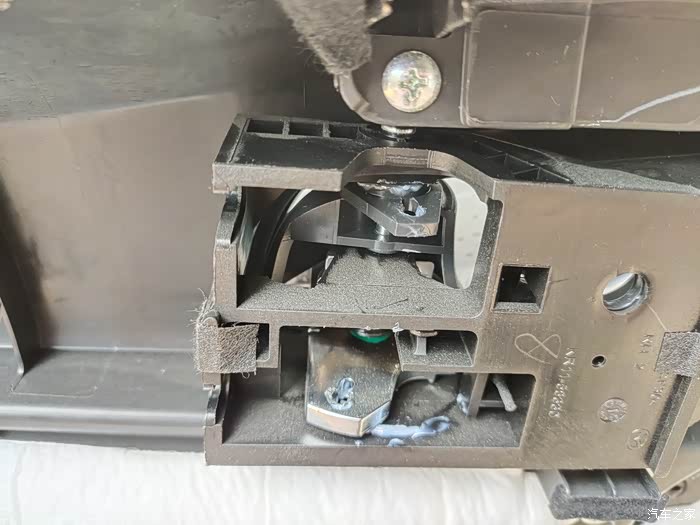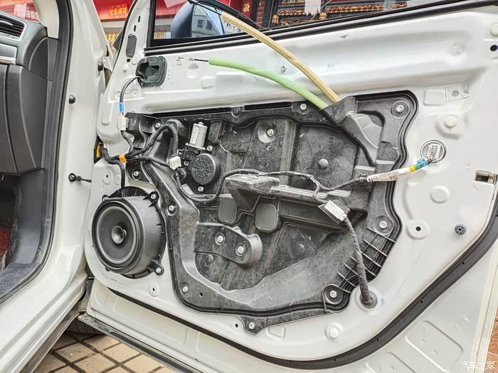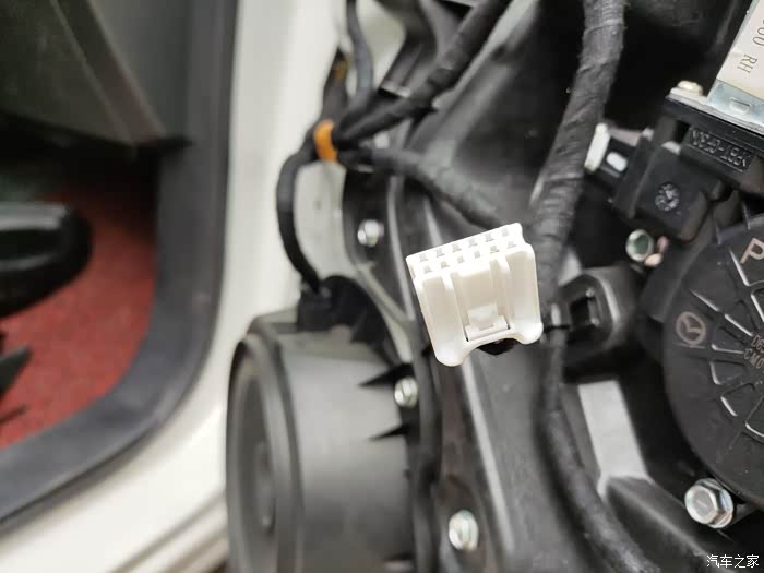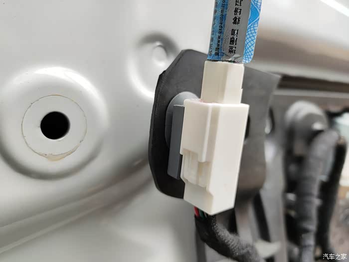 安装时一定要注意,倒车镜的排线要从玻璃升降导槽后面绕过来,不然排线会影响玻璃不能升降