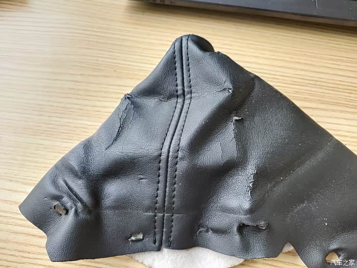 拆下来的防尘罩,原厂的是PU皮的,已经开裂了
