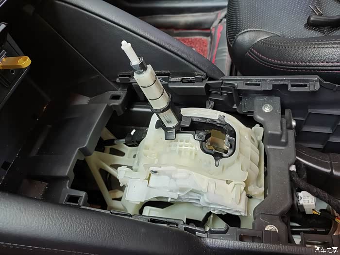 拆排挡头先把按钮撬起来,拿尖嘴钳把卡销拔出来,然后排挡头往上拔就能出来了。