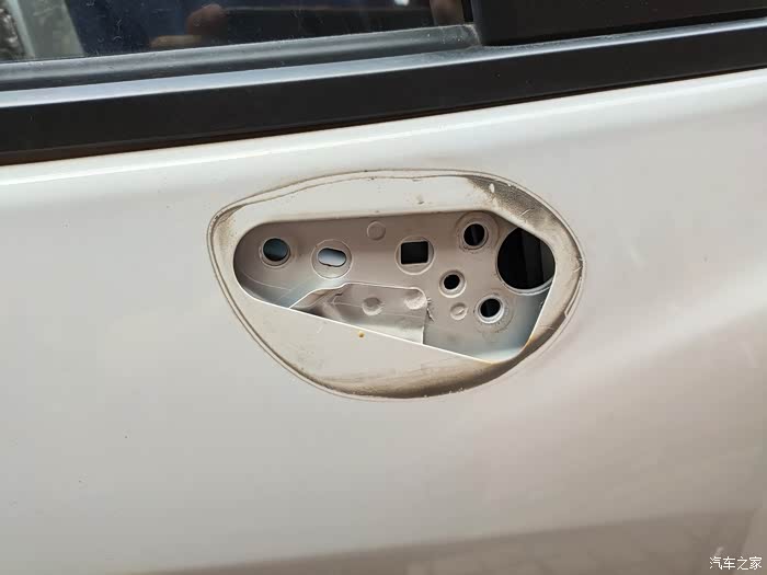 拆内饰板,先把装饰罩揭开,里面一颗螺丝,拉手处一颗螺丝拧下来