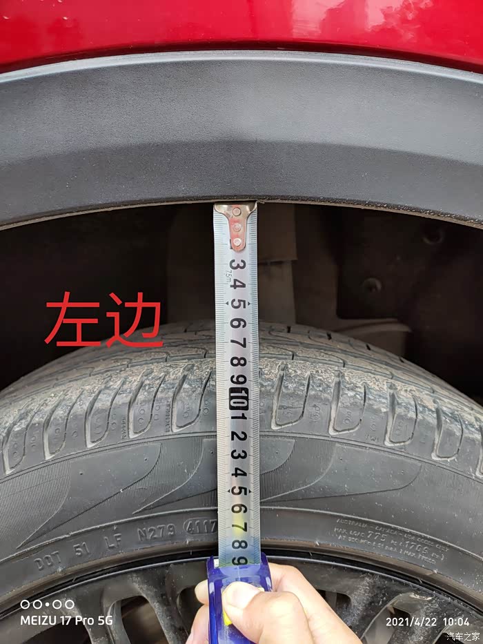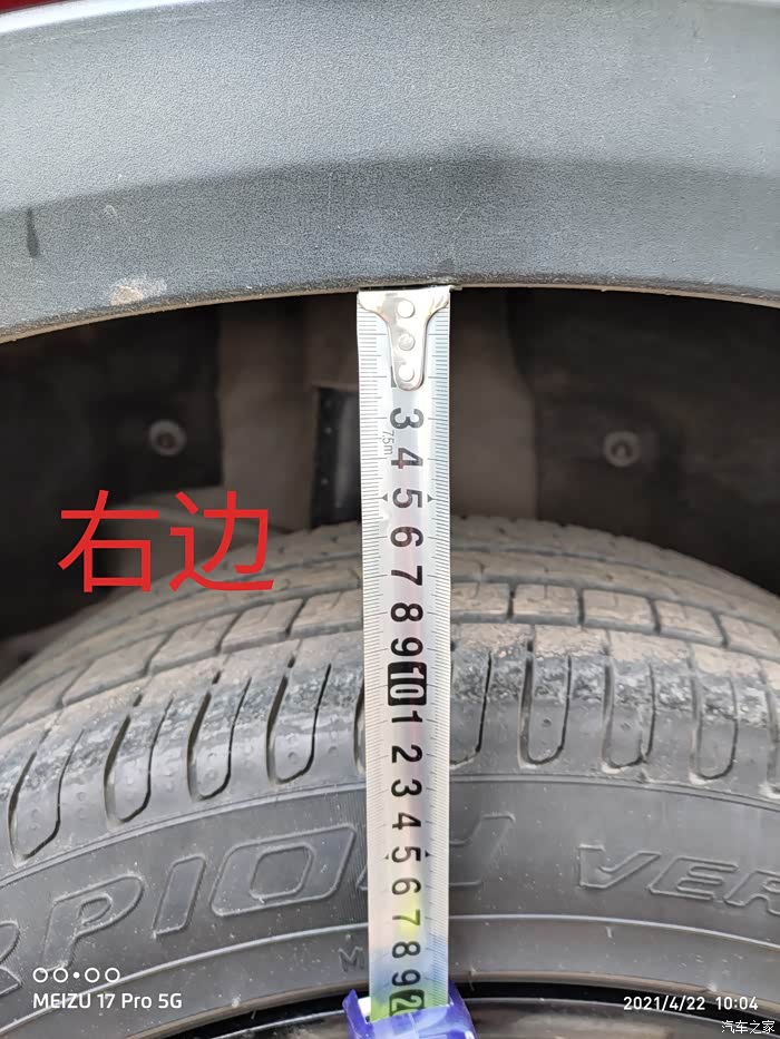 第二天回家发现右后轮眉好高,用尺子量了下,左10cm,右11cm。车友们你们有没有这情况?
