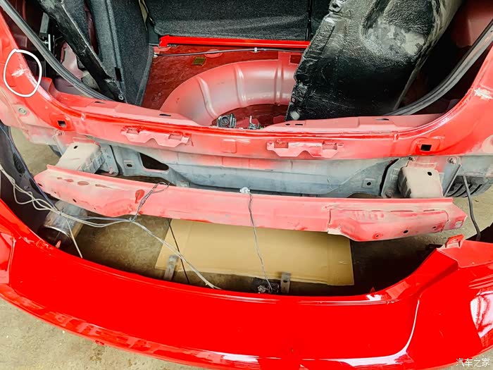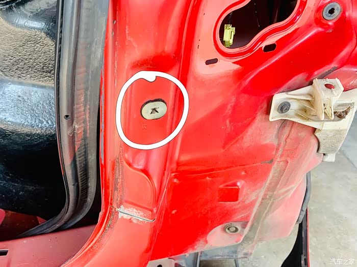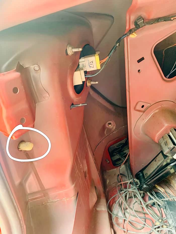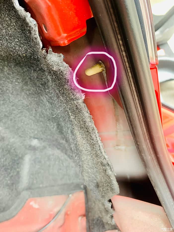 固定后杠的卡扣,底下有个类似石棉材质的密封垫片,时间长了老化烂了,所以导致卡扣周边松动进水,解决办法就是自制一个类似垫片换上,然后周边再打上玻璃胶封住,双保险、一劳永逸。