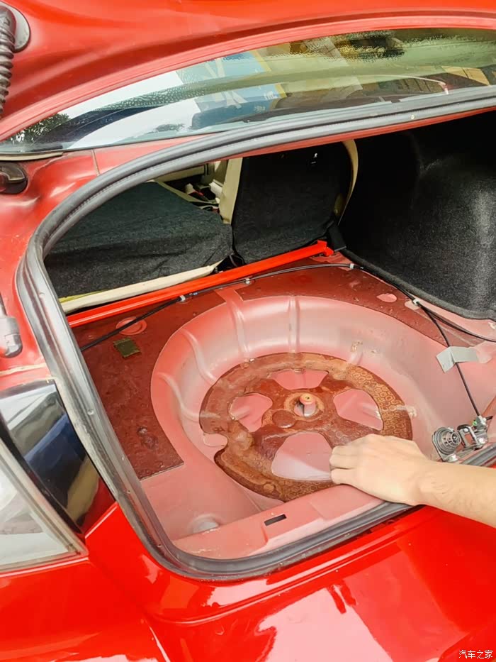 可以看到备胎上很脏,这是因为备胎下方潮湿导致