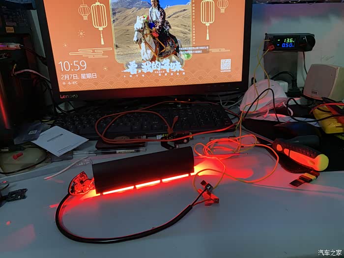 仪表盘的灯珠就是从这来的,这个灯原本是白色射灯,亮度不怎么样。既然白光不行,那索性改成红光可能还有一些作用,灯体是拼DD 十来块钱买的,tb买了点灯珠花了好几十。。。。。正在做耐久测试