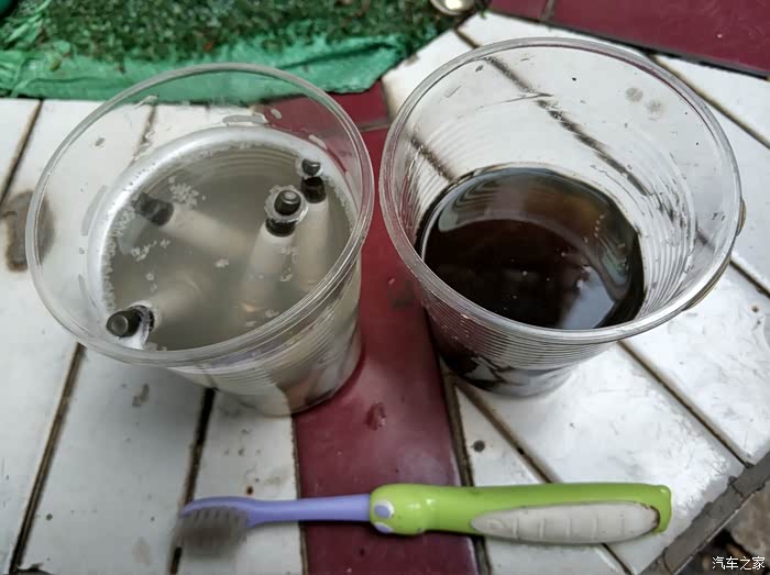右边是第一次浸泡,刷完后再放到左边这杯进行二次浸泡