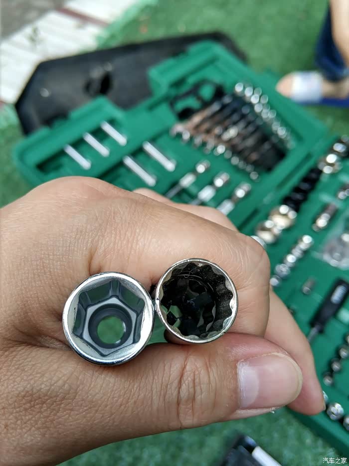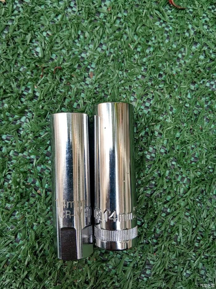 左边是普通的套筒,不能拆卸爱车的火花塞。右边是特制的超薄型套筒,这个才是主角。