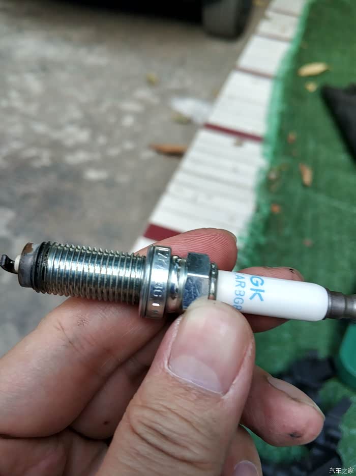 原装NGK,19年9月换的,感觉没开多长时间,就有这么多的积碳
