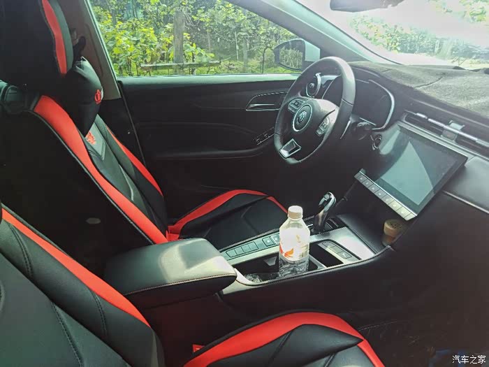 嘿嘿,内饰来了。因为原车本身就是黑色内饰,带红色线条缝边,所以软包座椅我也买的是大部分黑色,红色局部点缀。