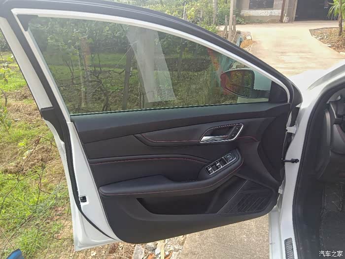 前门门板多处软包,后视镜调整按钮设计在了门玻璃的位置,不用低头去找还是挺方便的。
