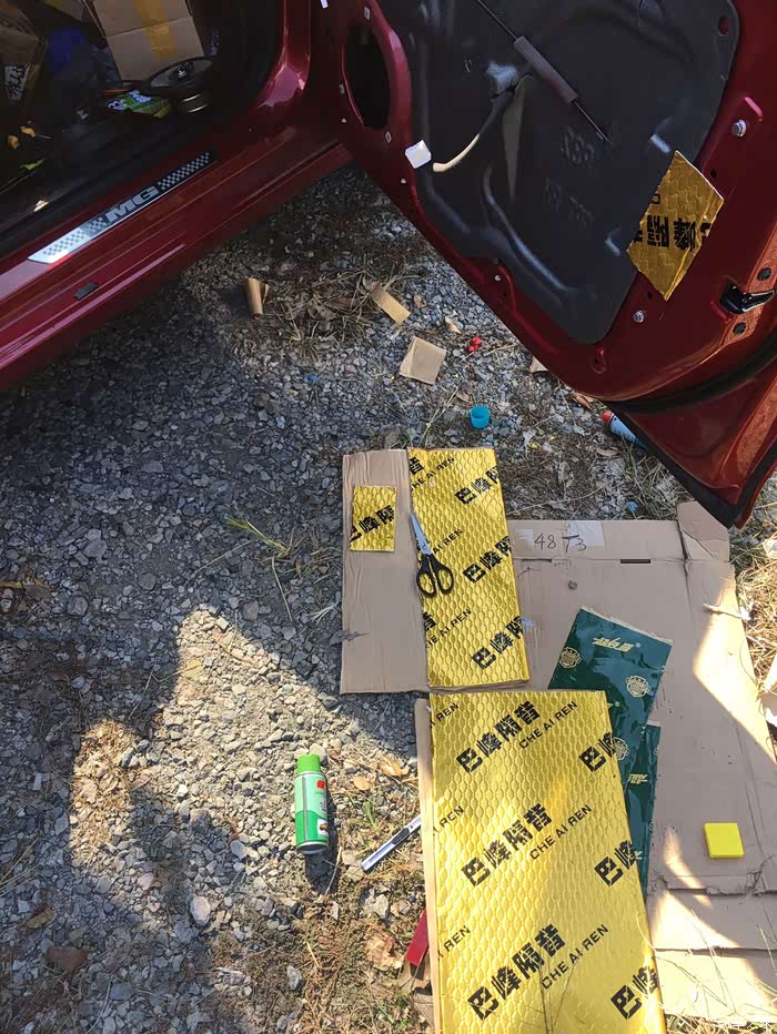 里面也不需要贴太多,主要不是为了隔音,止点震和回音就好,另外我觉得贴太满了,一个方面费钱,二门太重了,个人观点,一切为了省钱