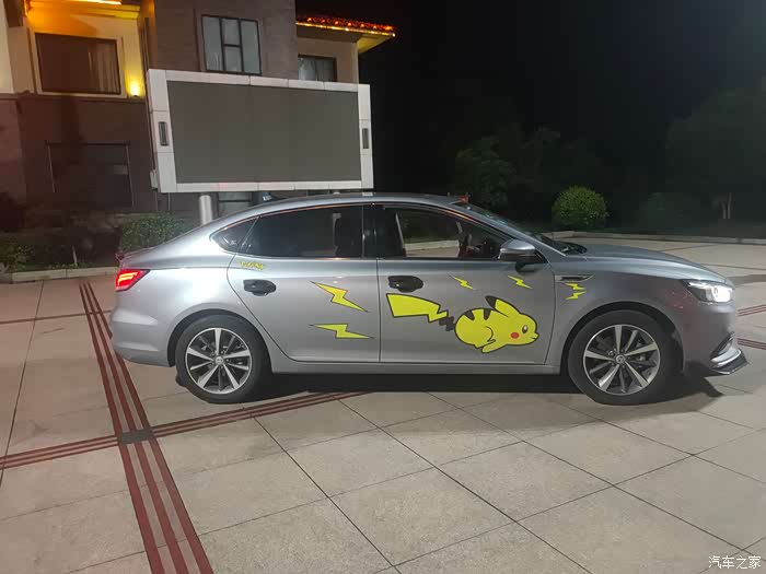 自己添加了一些装饰,配上流行的皮卡丘,像不像穿梭在夜间的闪电小子。我这款轮毂相对来说 我是挺满意的,完全不用改装去换轮毂了。但是三代MG6的轮毂,那真的才叫轮毂,帅的一塌糊涂。