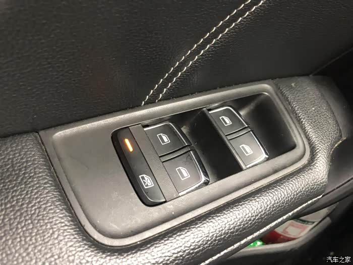 车窗按键,周围都是皮质包裹,触感很好