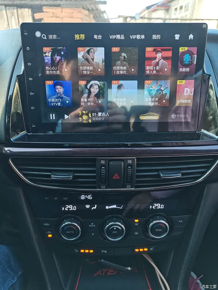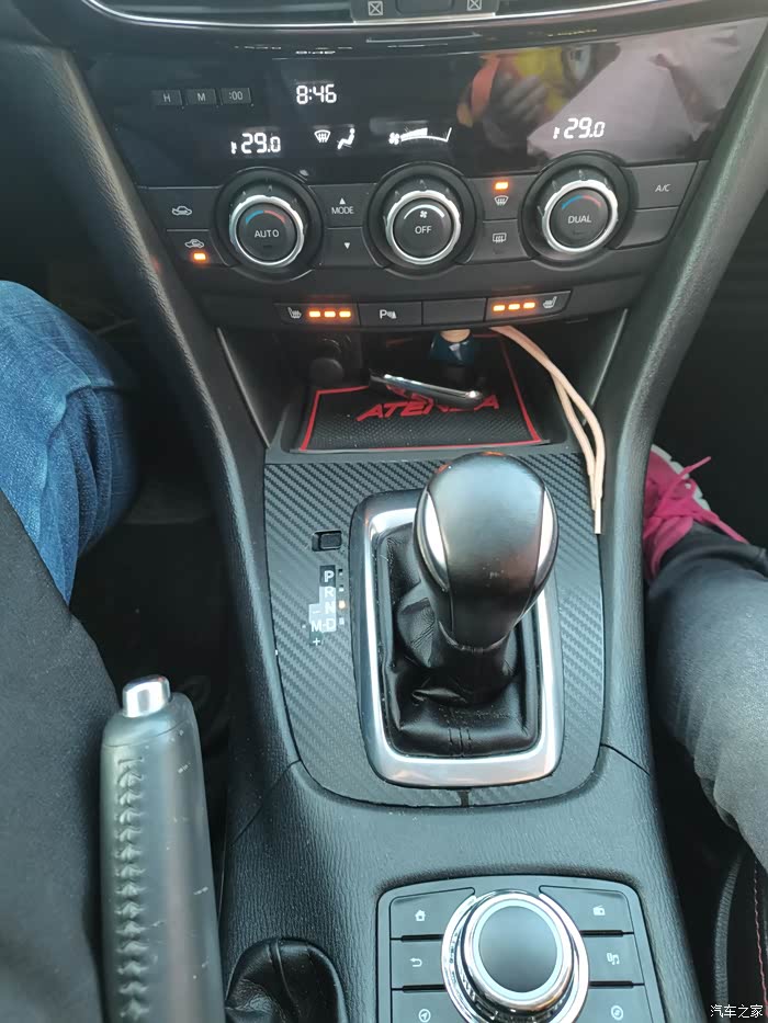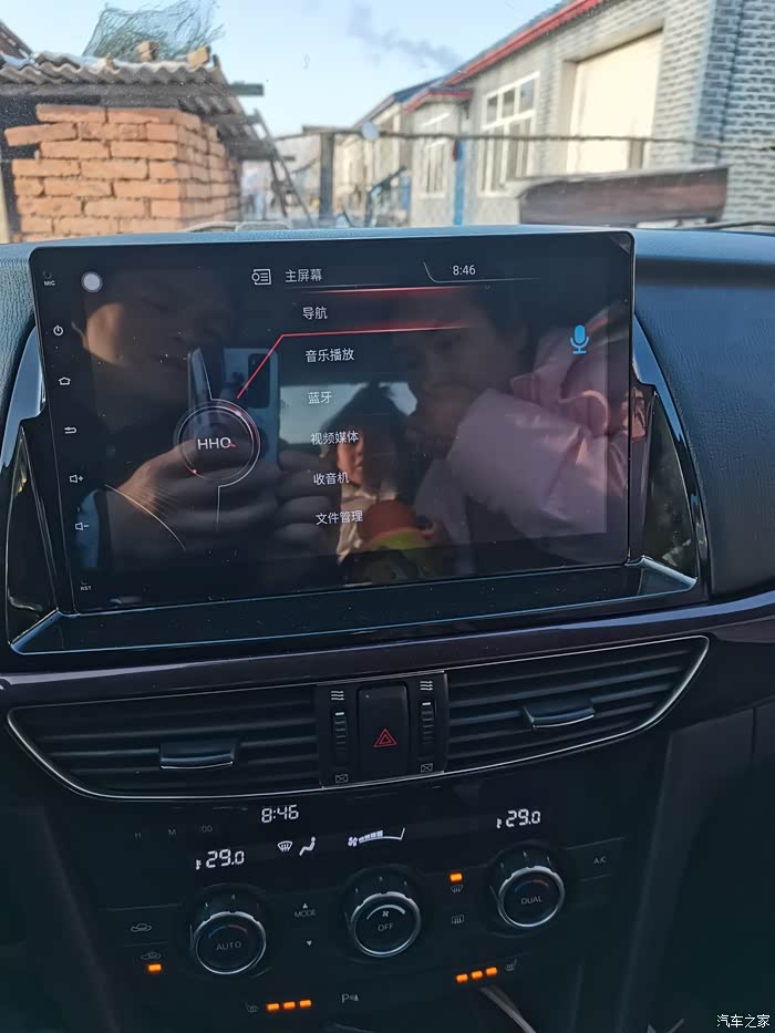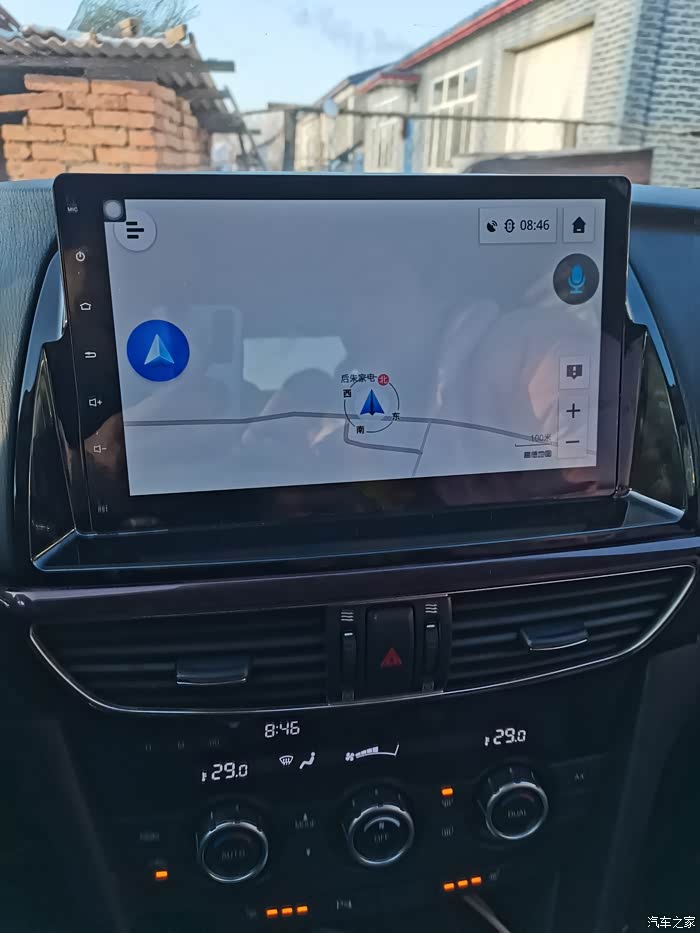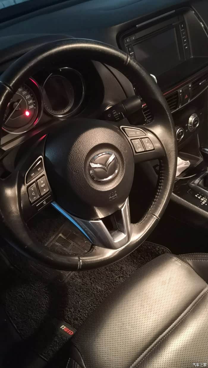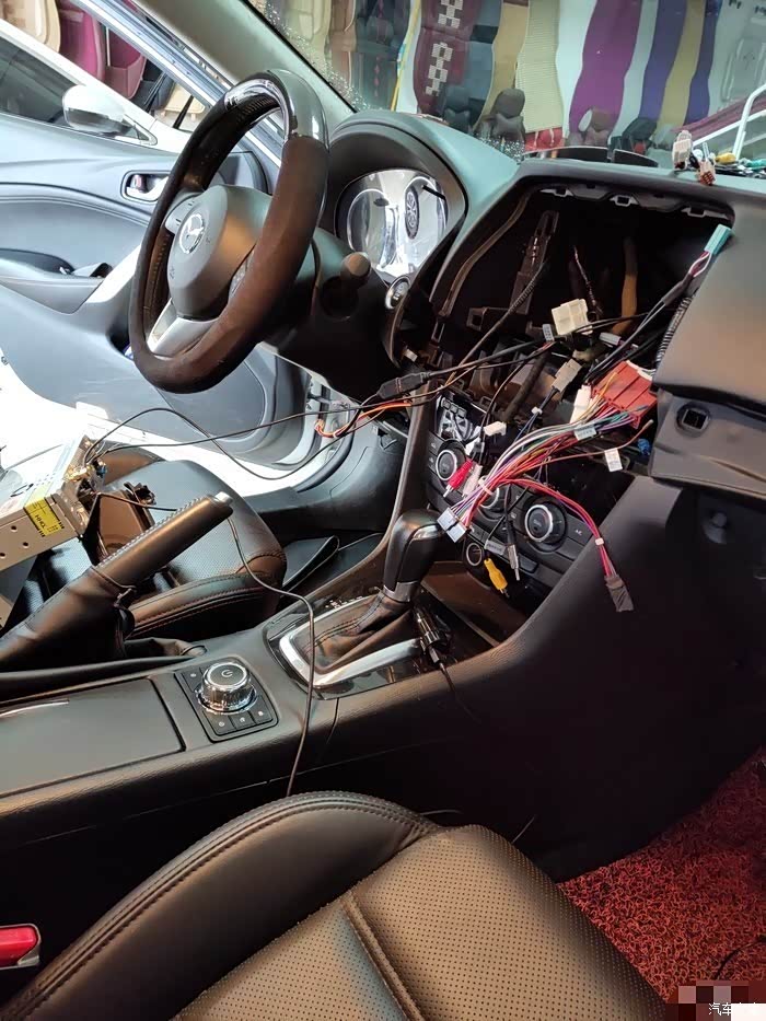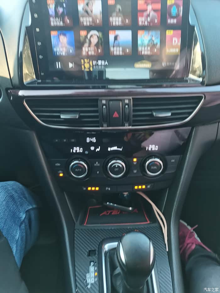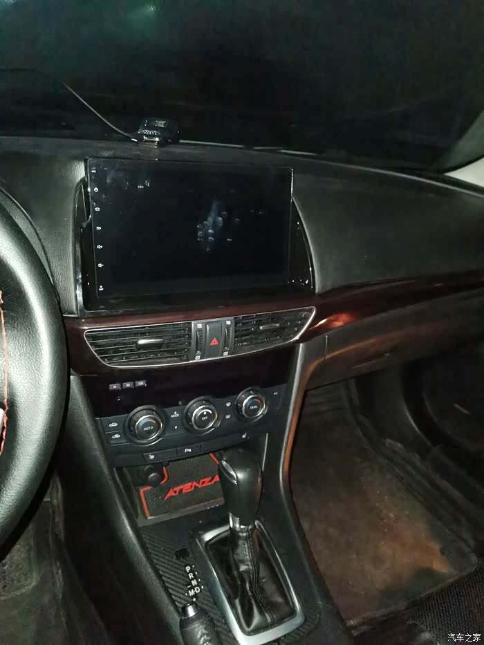 把行车记录仪和倒车摄像头都安好贴好,注意阿特兹这款的倒车灯在右后边,左后那个是雾灯,别接错了。刚开始我接的左后边的试了半天没反应就纳闷了,后来插头插上去挂倒档一看,左后灯不亮右后灯亮才明白原来我接错地方了。车机那边的倒车控制线不用接,直接插圆孔插头并且绝缘胶布固定防止脱落。