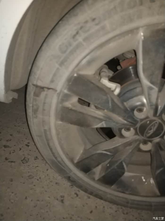 从一个很窄的地方的经过轮胎被划破啦。要说装个胎压还是有点作用滴 一开始没留意是轮胎划破啦,结果的结果就是听到胎压加测提示左后轮胎胎压异常然后就是看到胎压显示剩到1.9知道变成0.01。