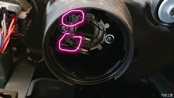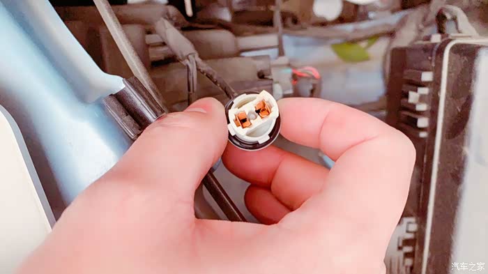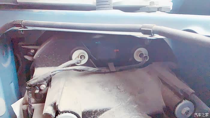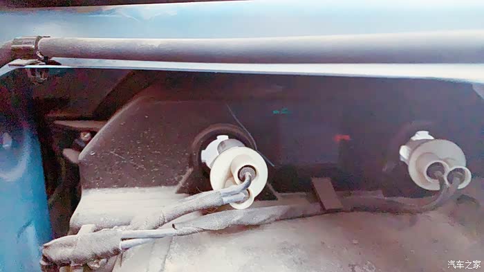 打开前机盖,大灯后罩上方能看到两个白色线束插头
