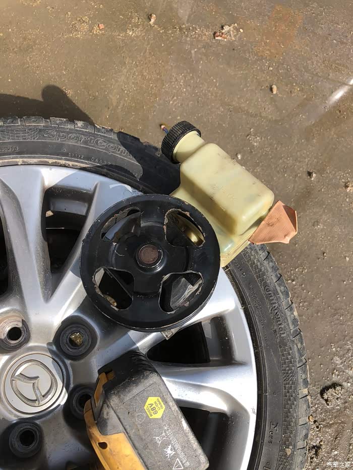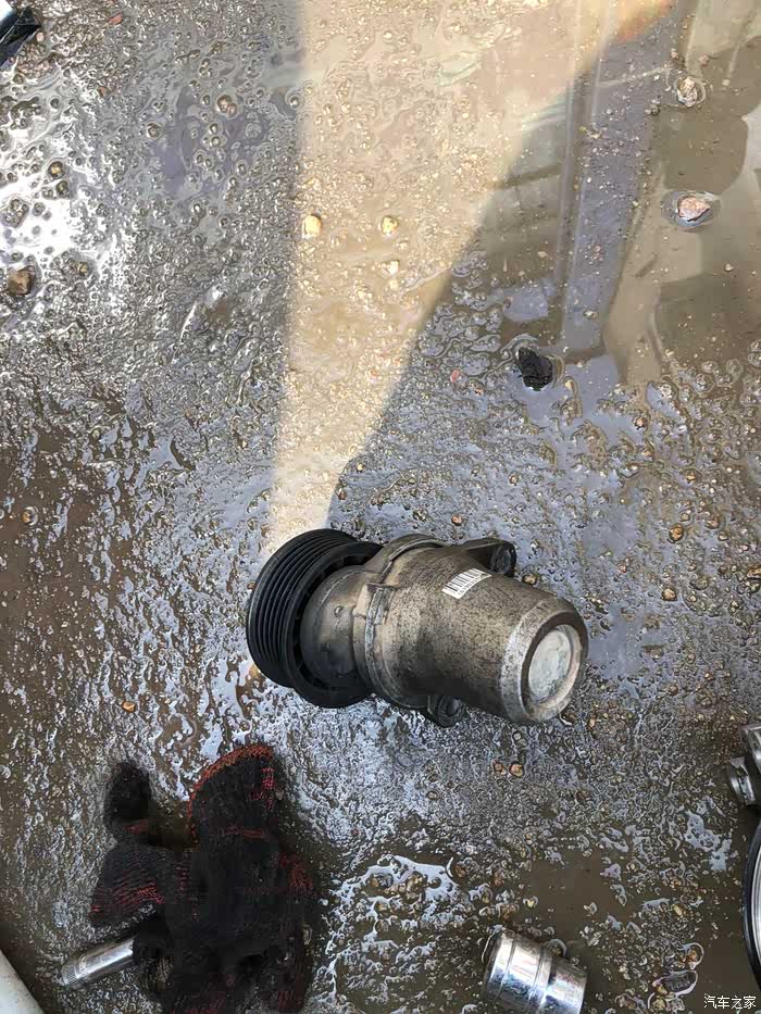 原车助力泵已经拆下来了!下边的油泥机头水都洗不掉,用平口一点一点的刮下来,然后再用机头水洗。真麻烦,没办法看着又不舒服。只能搞了。