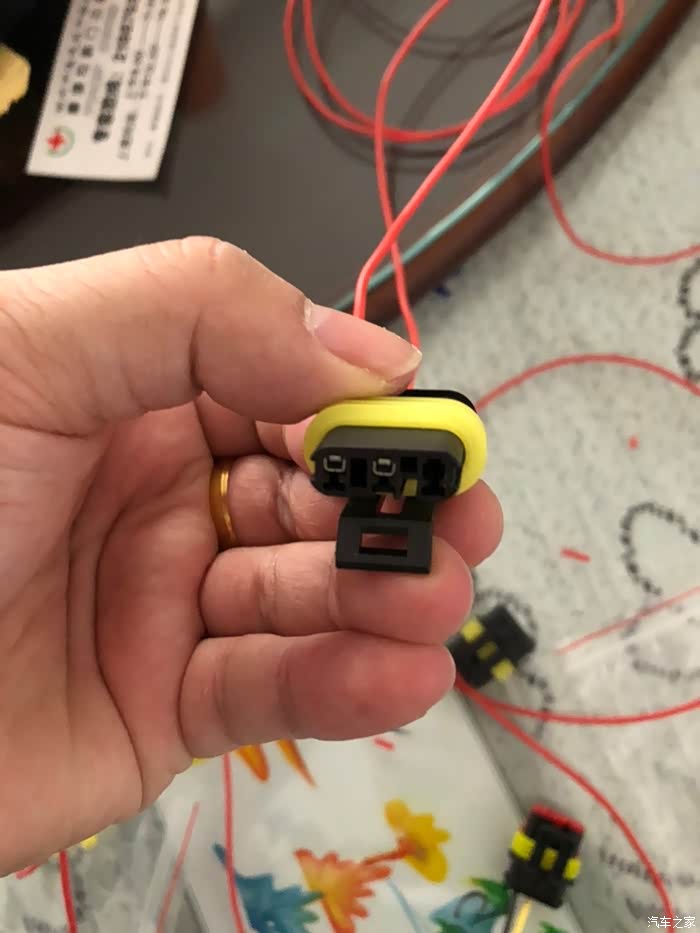 直接夹在远光线上,两个一对,变光线直接夹在插片里,用老虎钳压扁,夹子一夹,插片一插,OK了,为什么要用这个呢,就是想到万一年审不行,远光后盖一开,直接变光线插头一拔就好了,试过了,卡的很紧,不会掉