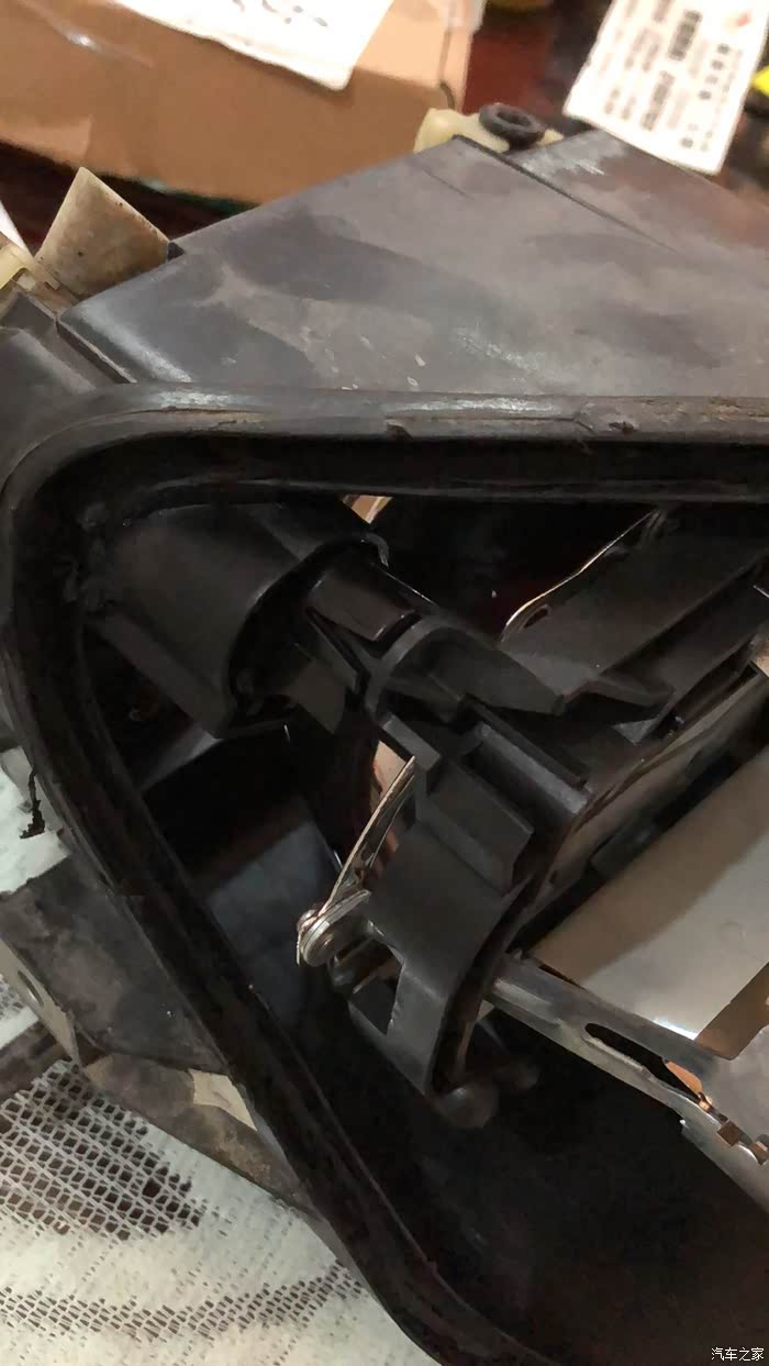 重头戏来了,拿上去问了广西的莫哥怎么拆,大姑娘上轿,也是头一回啊,等了一会就回我信息了,对准球头加热一下,然后拔出来,左边球头拔出很成功,第二个,恩,ok了,咔嚓一声,好,和还多车友一样,透镜支架卡爪断了