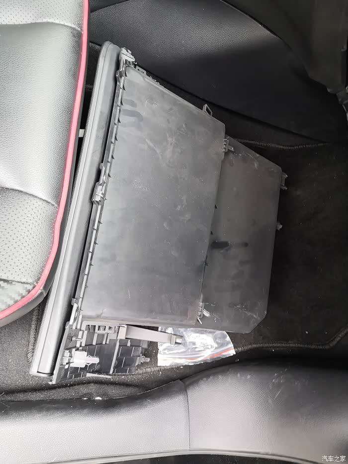 这个盖子就是空调滤清的盖子,爬把头伸进副驾驶底下,往左边观察就能看到这个盖子,打开空调滤清就在里面