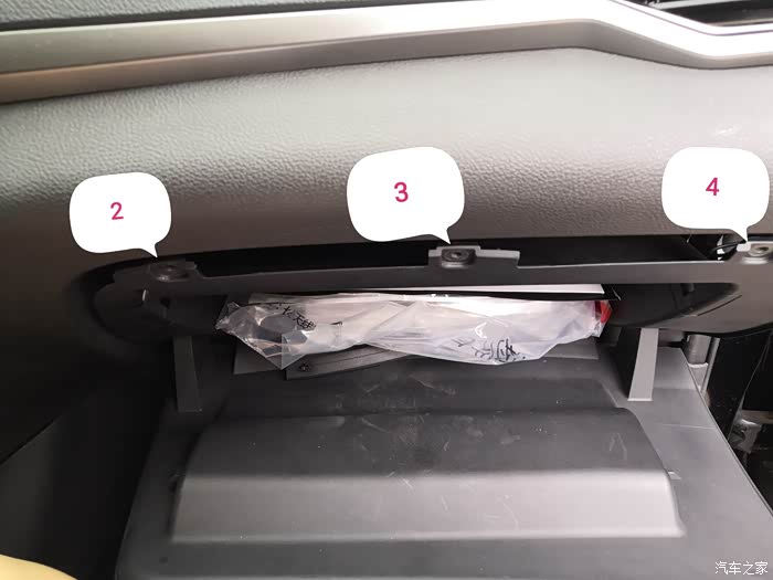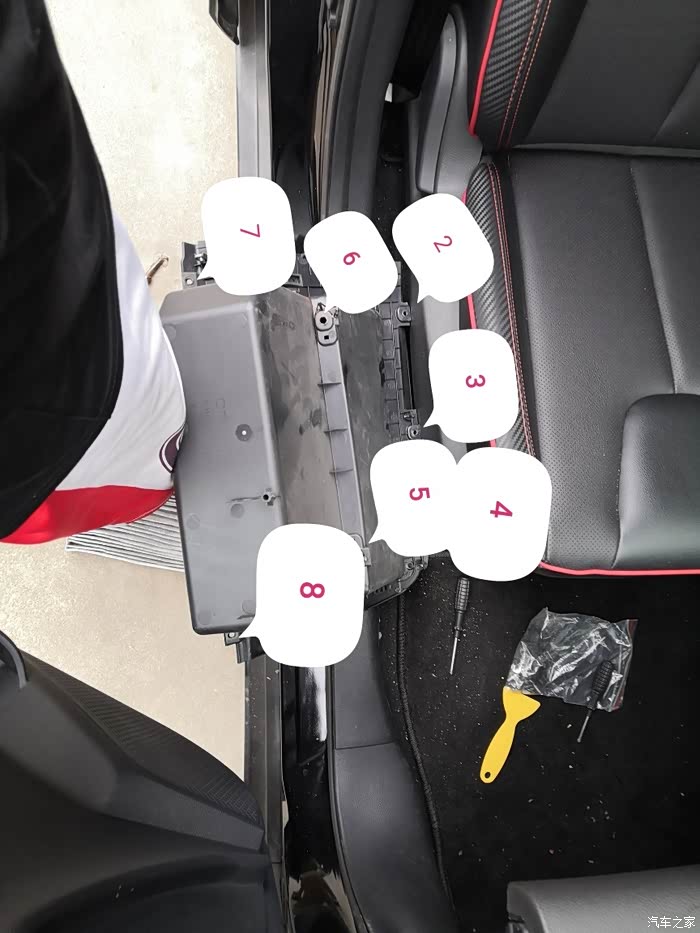 这是我把副驾手套箱拆下来后标记的8个螺丝点