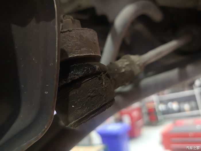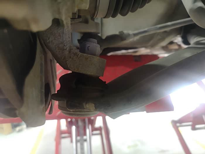 这么多年也没架起看过底盘,借换胎的机会仔细检查一下,哦豁,前下肢臂胶套老化开裂漏油。