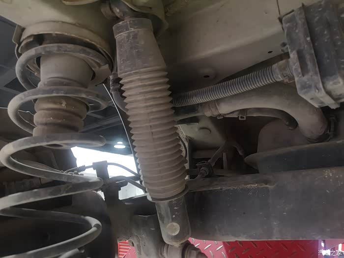 两边的转向拉杆胶套也都开裂