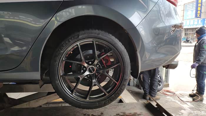 再说轮胎,由于经常激烈驾驶,节假日经常和车友们去跑山,所以优选抓地力好的轮胎,纠结于马牌MC6和米其林PS4。由于MC6没有活动,价格也一直坚挺在1400+,所以干脆选择了米其林,但是到米其林驰加店一问,沈阳地区PS4缺货,但是PS4S有货,再问价格1430,一狠心就上PS4S了!ps4s本身兼顾了20%的赛道性能,胎面内侧和外侧橡胶配方不一样,外侧偏硬,追求干地抓地力,内侧偏软,保证湿地抓地力。剩下的看图说话吧