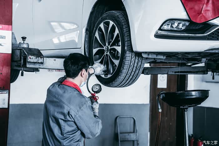 4S人员一开始在检查轮胎,我的这个是去年才换的,没有啥问题。