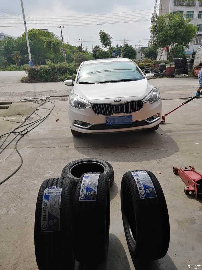 终究还是扛不住岁月这把杀猪刀,不只是帅哥靓女们,K3的轮胎也是一样经不住日子的催促,六年的风吹雨淋,日晒夜露,整日飞驰在幸福的康庄大道上,完成使命光荣退役的这一天到了。趁着中午休息,直奔镇上专事轮胎的修理店,开门见山直接开谈。爱车行驶50386公里,因为其中一条胎刮伤了,另3条也磨损的有个样了,原车耐克森,高速胎噪大,直接把四条都换了,并在汽车之家交了作业有约就走,迎六一换新鞋,安全第一.。