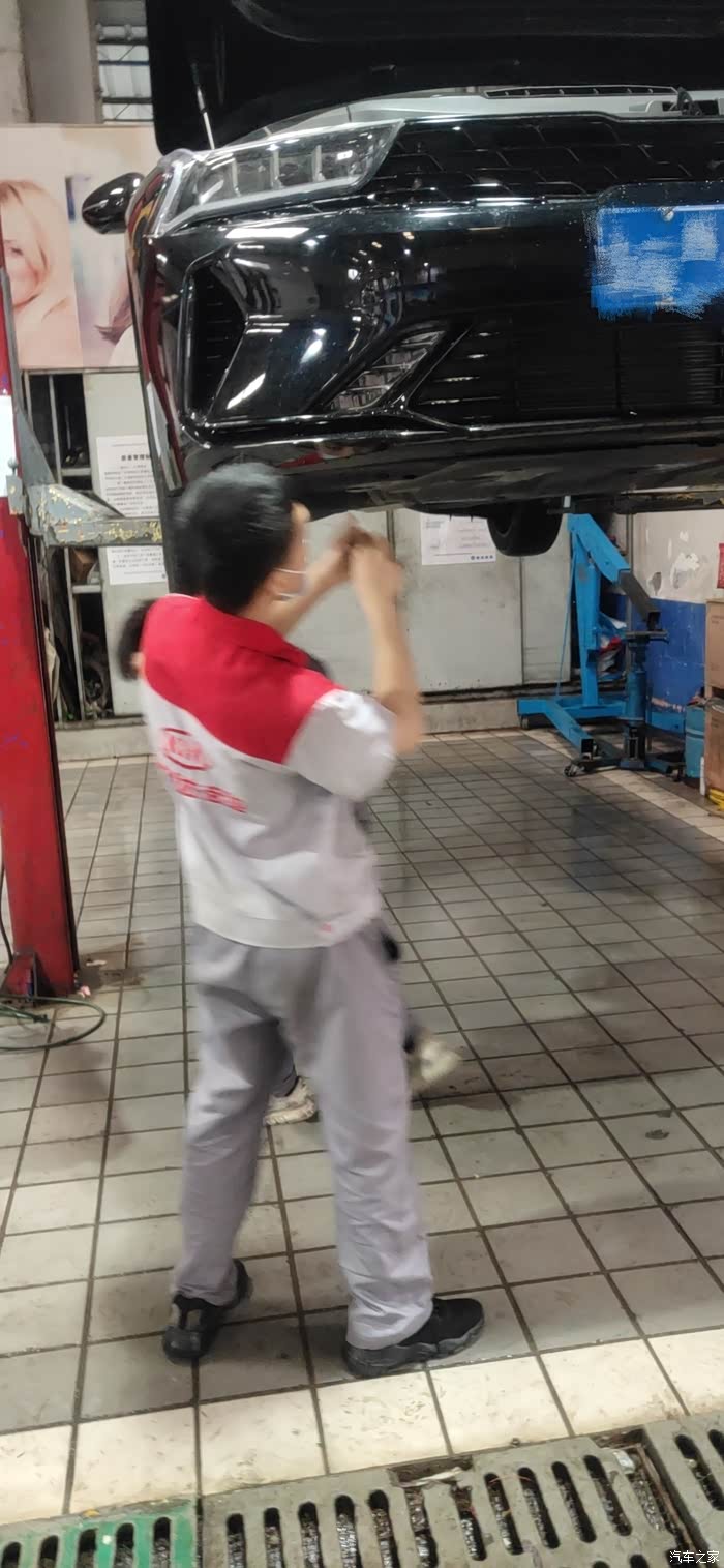 技术小哥给我检查了胎压情况,以及底盘零部件情况。随后娴熟的拆下护板。
