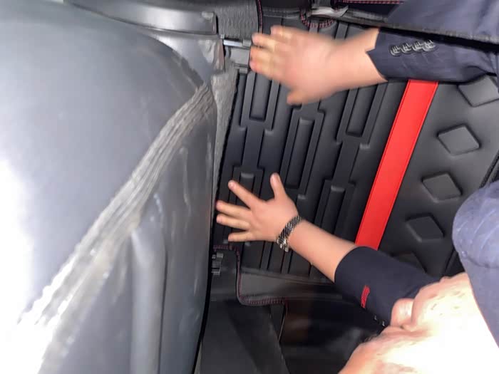 后部的脚垫可以延伸到座椅的下面,所以原厂的脚垫在细节方面安装的都比较好,没有凸起的现象