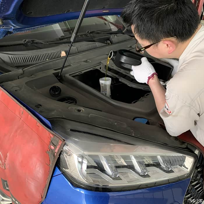 七点五十左右负责接待我的师傅来了,首先跟他进去看下保养项目及费用订单。在机油选择方面,因为最近感觉发动机转速超过2000声音就有点大了,而且准备后面多跑跑再去4S店,所以就升级了一个235的合成机油5W-40,然后一个滤芯。师傅给我推荐了一个什么发动机清洗我拒绝了,然后就打服务单签字开始保养啦。整个保养过程全程参观哈。