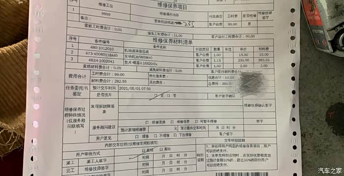 一切搞定,保养结束,拿着单子去洗个车,然后打球去啦。整个服务过程不到一小时,全程可以参观,服务整体感受很好!保养完开车发现发动机声音小了很多,看来保养确实是有效果的。码字不易,求加精鼓励。