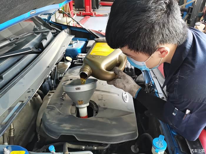 正在倒入新鲜的血液,我一般很少跑高速,所以矿物油可以,如果是发动机经常高速运转,最好使用半合成以上的机油,对于涡轮增压设备润滑效果会更好。