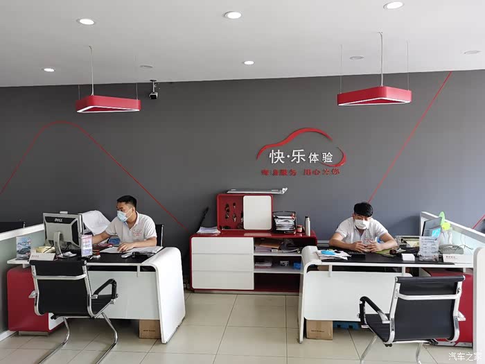 保养完,到售后前台结算,实际上有四个桌子,我这一进门就拍,拍小了,哈哈。