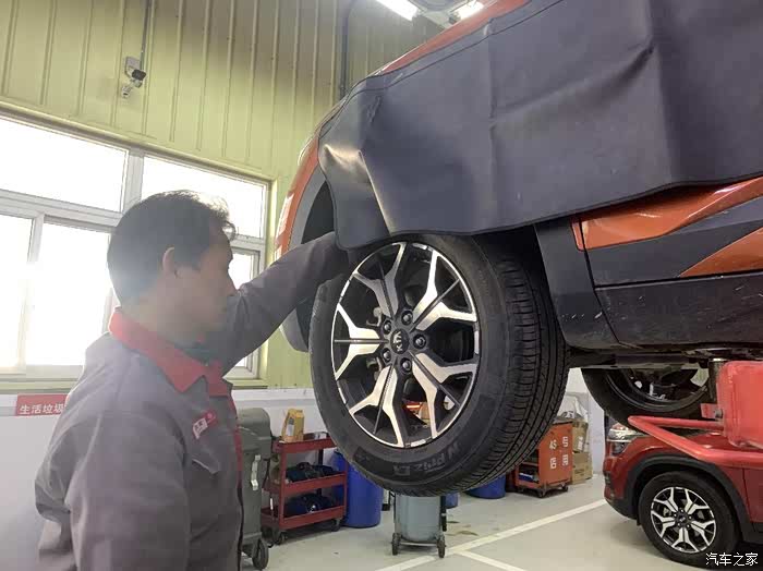 趁机油在放的时间,师傅先检查了刹车片,制动管路,轮胎磨损,还有悬架等等。师傅提醒我尽力不要原地打方向,不然对轮胎和底盘系统的磨损比较严重