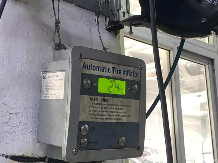 检查了一下胎压在前轮为2.2师傅说也在正常范围,但最好还是和其他轮胎胎压保持一致,避免有磨偏的情况。