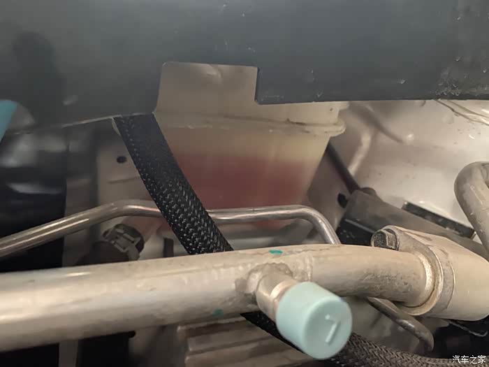最后检查了一下防冻液颜色是红色的,不缺少,一切正常。
