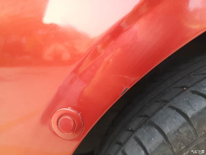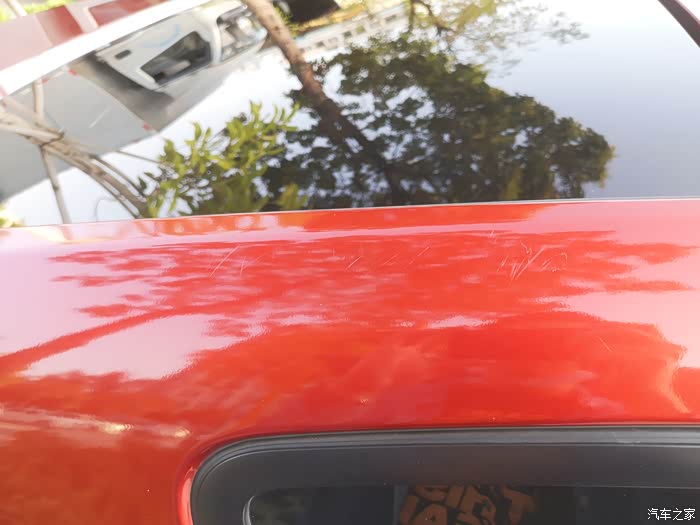 后备箱上的划伤,拍照效果不明显,实际还是很显眼的,不过还在只是划伤
