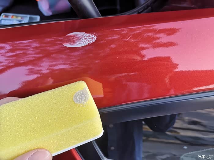 涂抹点划痕蜡在海绵上来回擦拭就可以了