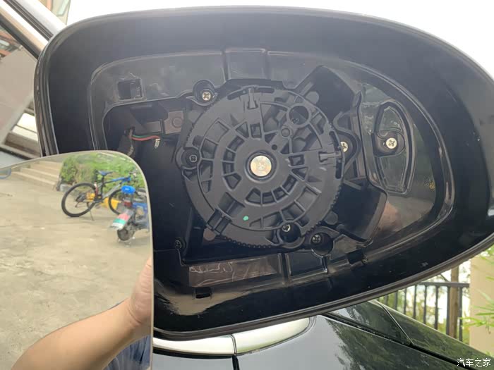 6、拆完螺丝后就是最最重要的时候了,打开后视镜的罩子,我第一次也是尝试完失败了,回家找视频教程后,又进行第二次拆卸。