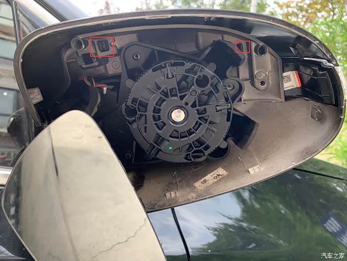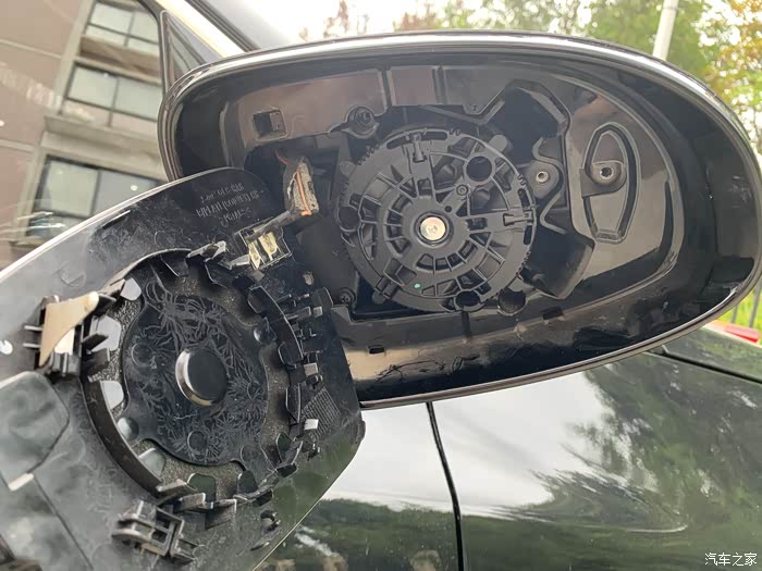 大家注意那根线是镜片加热的线,是焊接上的,而且用封胶封住了。这也就是为什么没有单独卖镜片的原因了,所以镜片碎了,4S店肯定是整套给你换的。